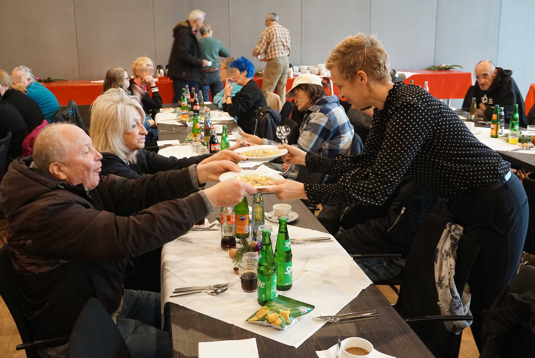 Sie und ihr Team vom Tagestreff „Moin Moin!“ hatten Einladungskarten zum Essen am Tagestreff, der ambulanten Hilfe, dem Obdachlosenwohnheim am Kiebitzweg, an die stationäre Hilfe in Kästorf und an die Tafel verteilt und zudem hat es sich herumgesprochen. Seit 2017 wird nun zum achten Mal unter dem Motto „Gifhorn miteinander“ dieses adventliche Essen aufgetischt.