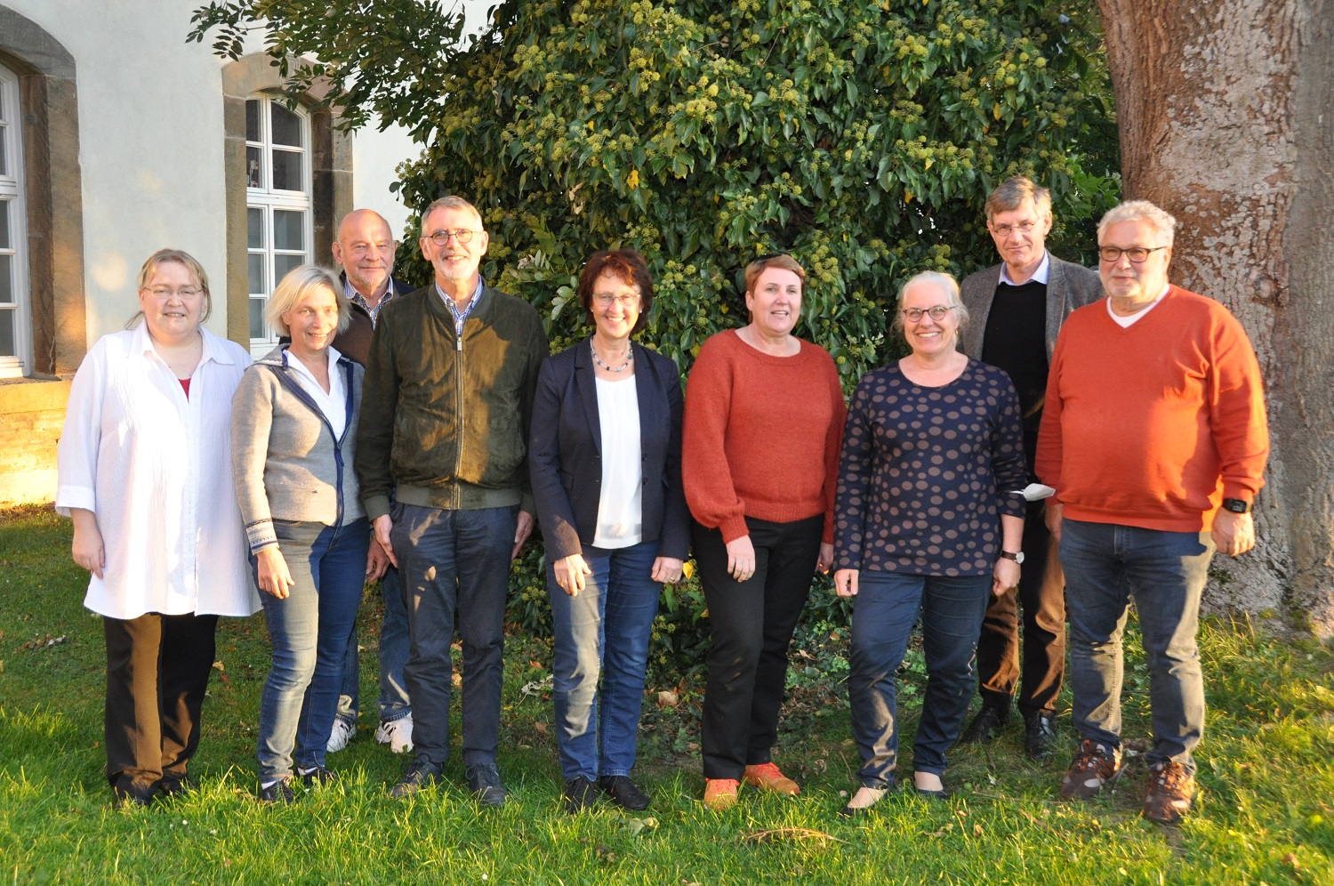 Bild: Der Kirchenkreisvorstand mit Moderatorin Ulla Evers und Carmen Jost aus dem Kreiskirchenamt. Angelika Meyerdierks hat der Klausur nicht bis ganz zum Schluss beiwohnen können, Jürgen Harting konnte nicht teilnehmen. Foto: Thomas Häussler