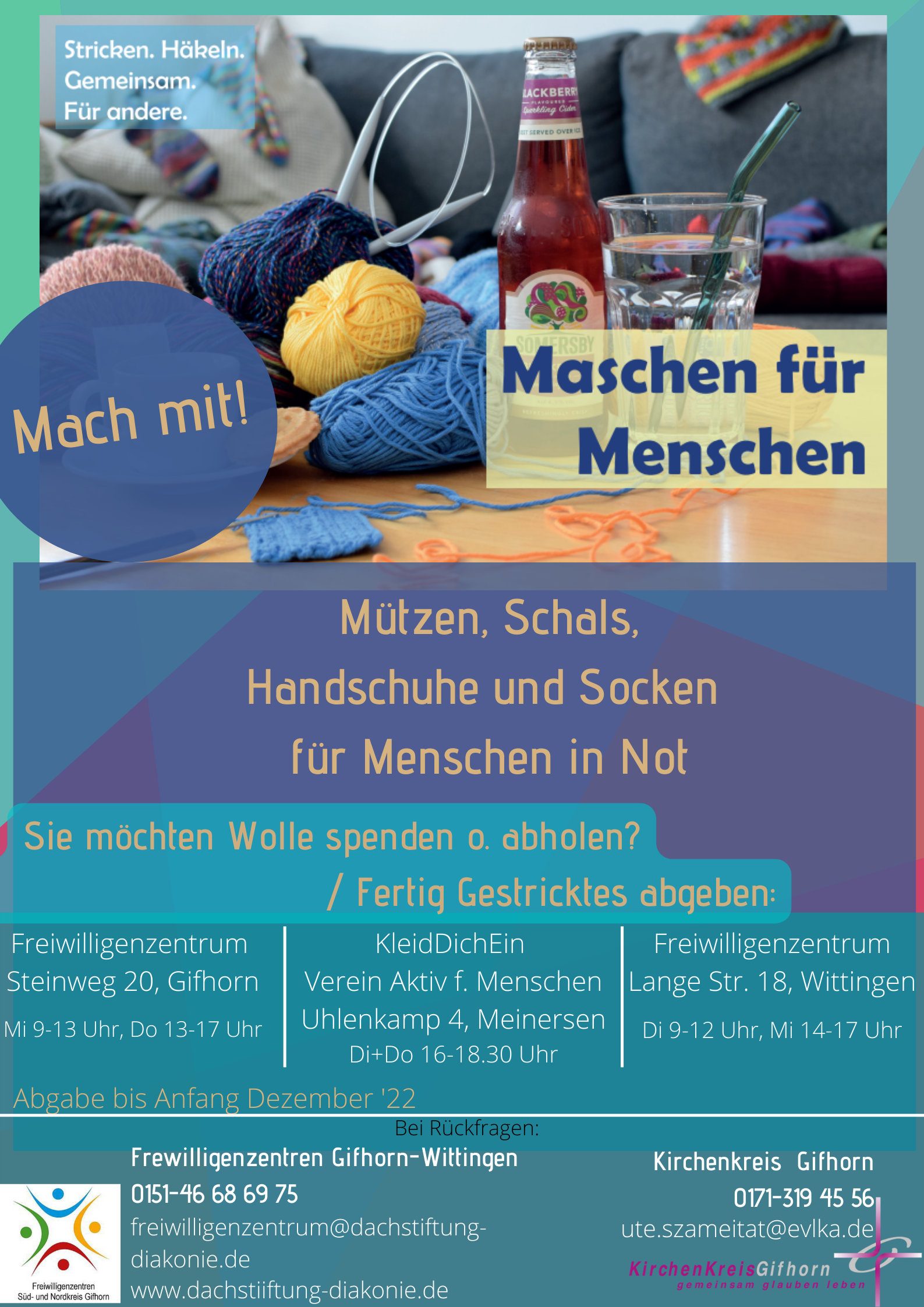 Machen Sie mit! Stricken, Häkeln, Organisieren, Wolle spenden ... Beteiligen Sie sich an der großen Strickaktion „Maschen für Menschen," nach dem Motto „Jeder soll warm durch den Winter kommen.“