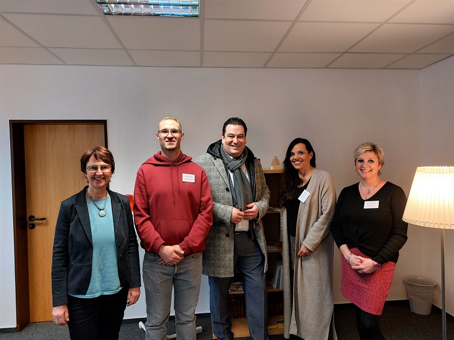 Foto v.l.: Superintendentin Sylvia Pfannschmidt mit den ZoB-Mitarbeitenden Bastian Maas, Leiterin Uta Bausmann und Ilka Wittstock, Landrat Tobias Heilmann in Ihrer Mitte.